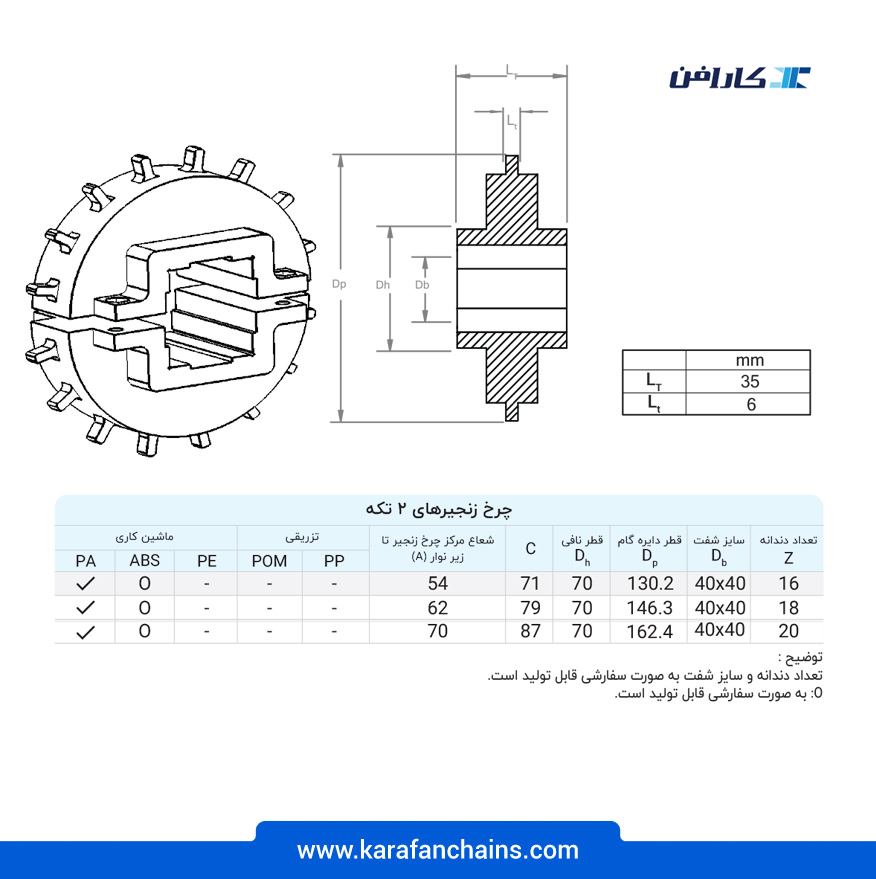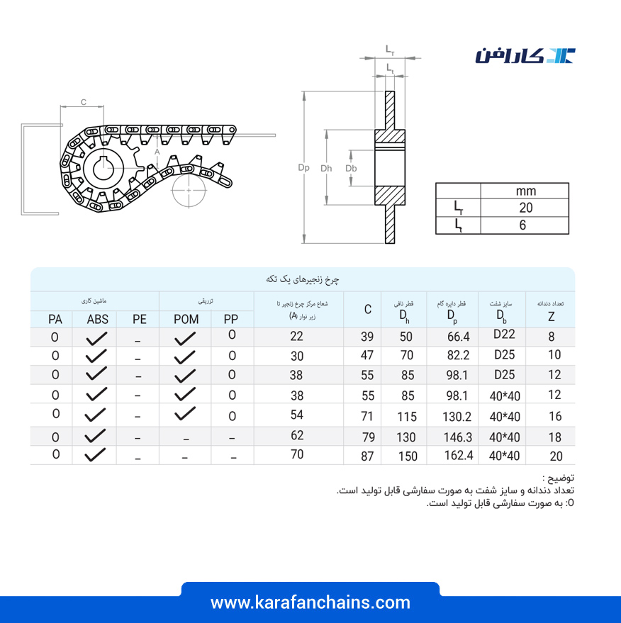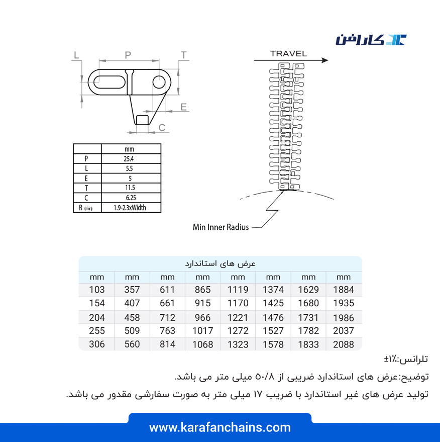 | جدول مشخصات فنی تسمه مدولار چرخشی ( اسپیرال ) گام 1 اینچ قلابدار | |