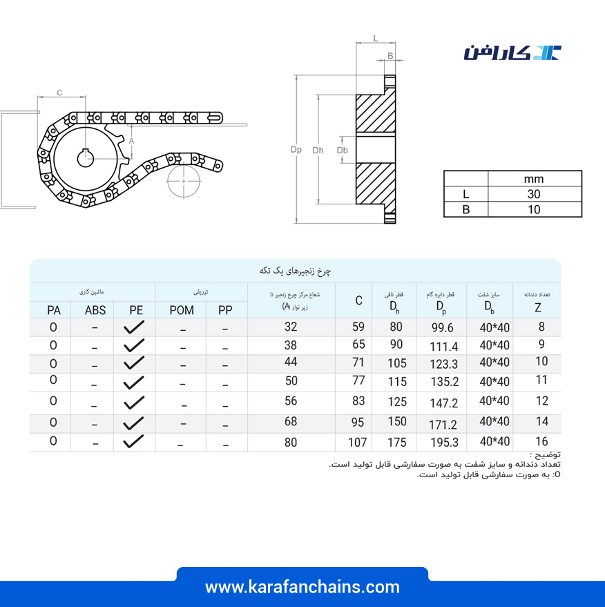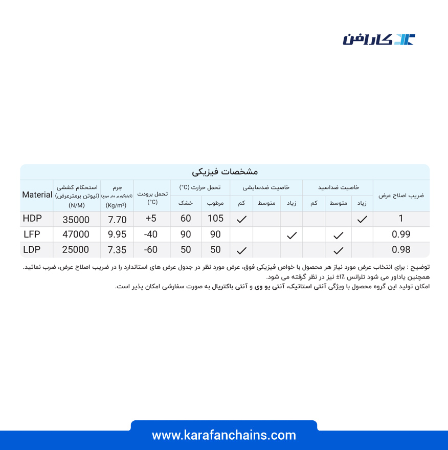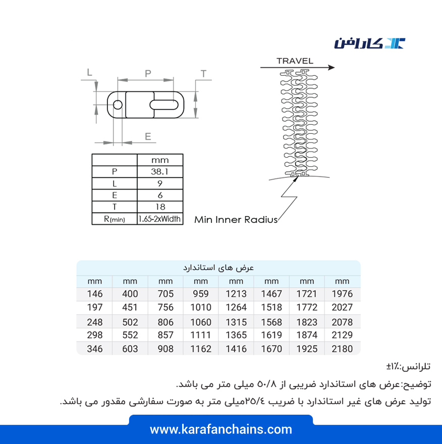 | جدول مشخصات فنی تسمه مدولار چرخشی ( اسپیرال ) گام 1.5 اینچ - آبی | |