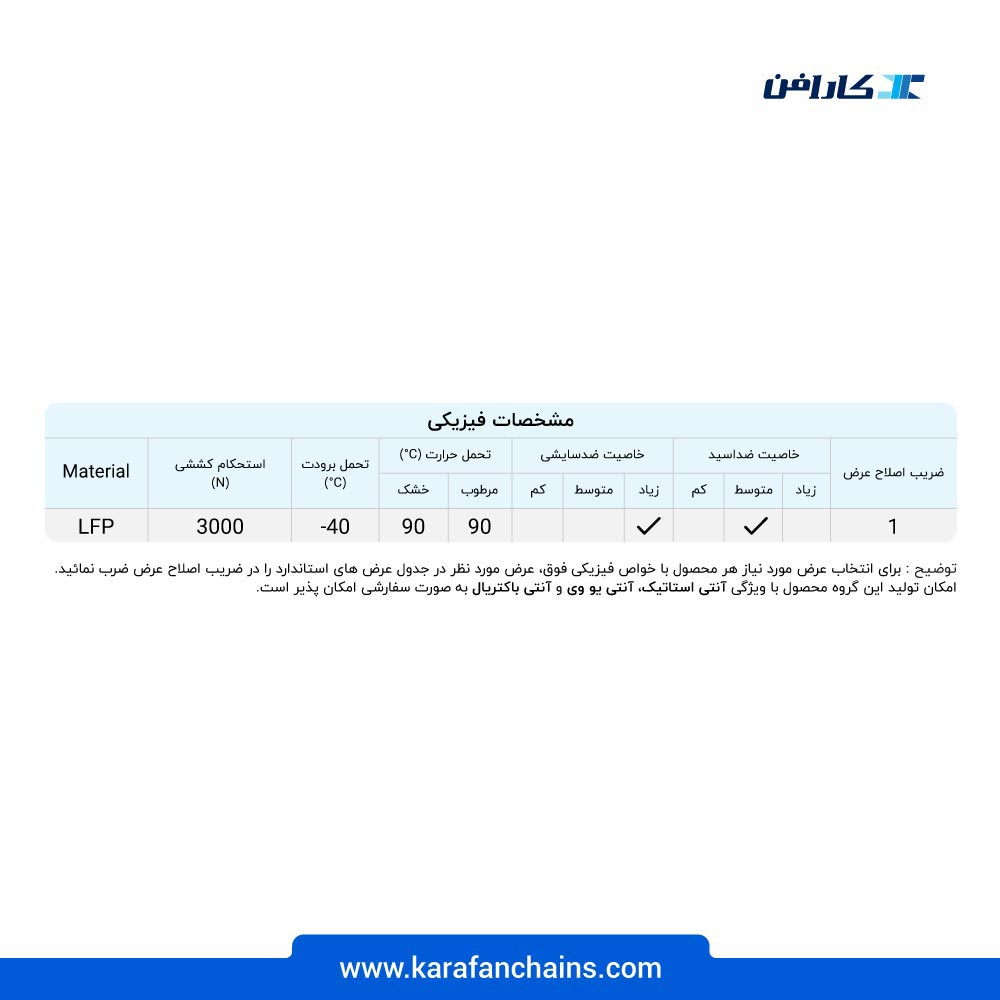 لازم به ذکر است گرید غذایی LFP با خاصیت استحکام کششی و ضدسایشی بالا و مقاومت متوسط در برابر اسیدها و قلیاها گزینه ای مناسب جهت استفاده در صنایع غذایی و تبدیلی می باشد.